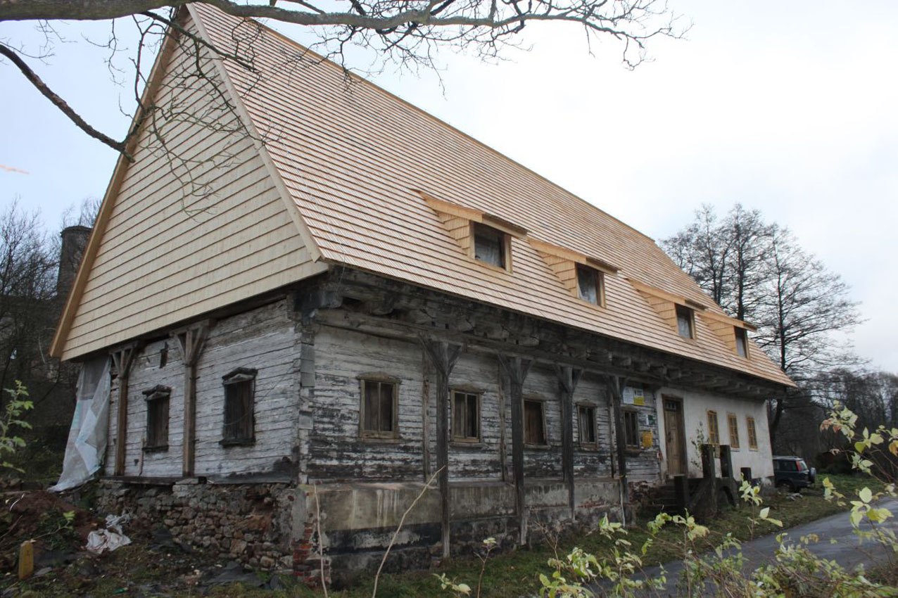 – wymiana pokrycia dachowego z przywróceniem pokrycia z łupka na sygnaturce,