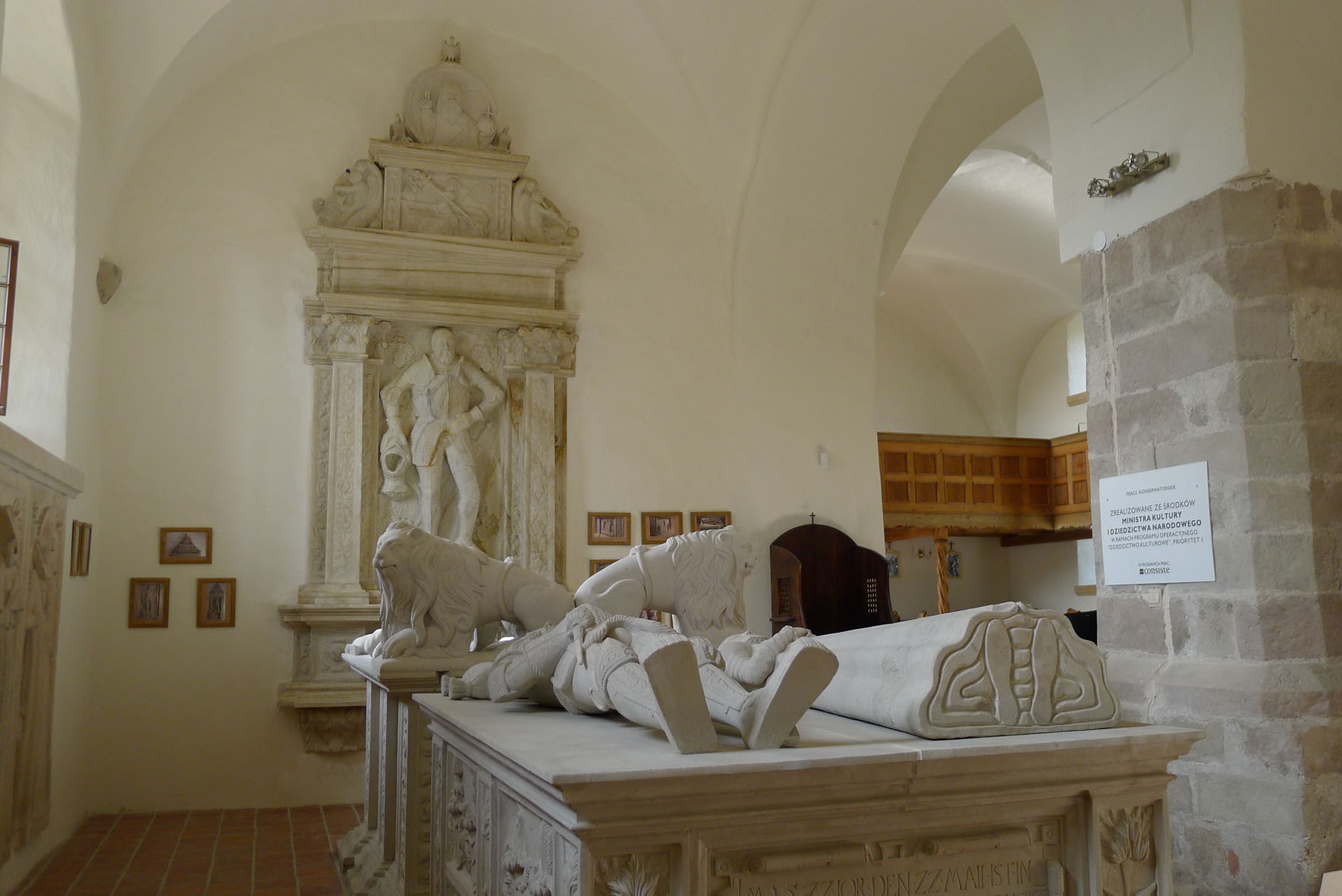 – ukończono  remont ścian  wewnętrznych krużganków z wymianą tynków przyziemia na renowacyjne, przywróceniem historycznej kolorystyki, odkryte  fragmenty malowideł zabezpieczono wstępnie, prace finansowane w 2012 i 2013 r. ze środków  Ministerstwa Kultury i Dziedzictwa Narodowego i własnych Parafii.